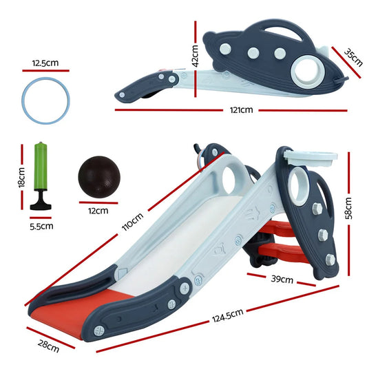 Kids Slide 170cm Extra Long with Swing and Basketball Hoop PlaySet - Blue