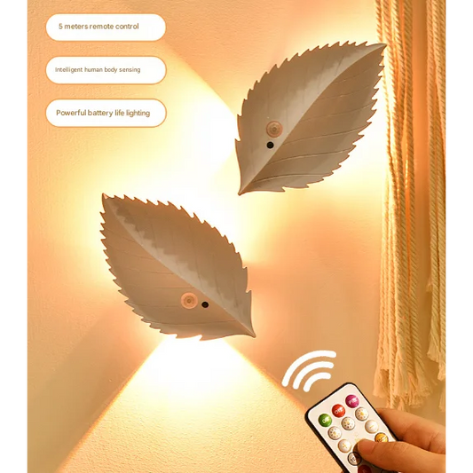 White RGB Color-Changing Leaf LED Night Light - Wireless Motion Sensor Wall Lamp with Remote Control for Ambiance Lighting