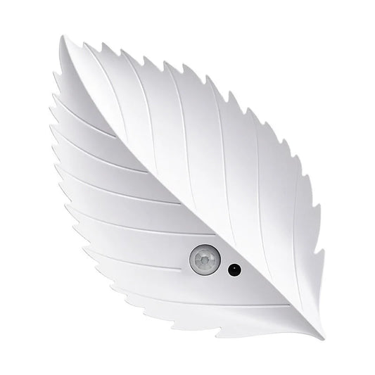 White Leaf-Shaped LED Motion Sensor Night Light - USB Rechargeable Wireless Wall Lamp with Remote Control