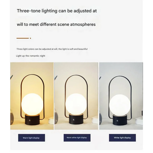 Black Portable Rechargeable LED Lantern Lamp - Touch Control 3-Color Dimmable Desk Light