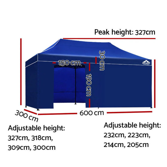 Pop-Up Gazebo Marquee 3x6m, Folding Wedding Tent Shade, Blue