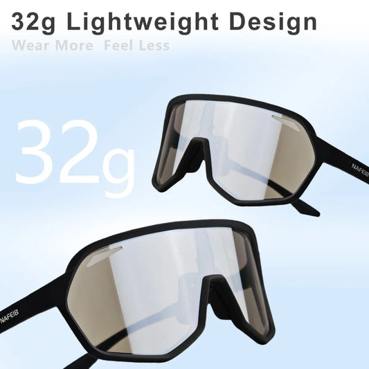 Black frame and photochromic silver lenses Photochromic Cycling Sunglasses - Lightweight TR90 Frame, HD Vision for Road Biking & Running