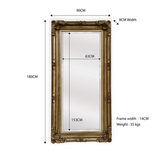 Gold Beaded Framed Mirror - X Large 190cm x 100cm