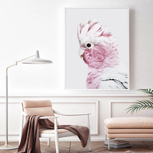 Wall Art Pink Galah White Frame Canvas 40x60cm