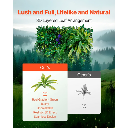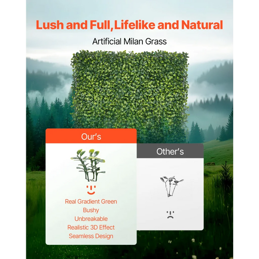 VEVOR Artificial Grass Wall Panels, 12 PCS 20 x 20 inch, 3D Combination Greenery Boxwood Panel for Indoor Outdoor Green Decor & Ivy Fence Covering, Privacy Backdrop Wall Hedge Screen for Garden