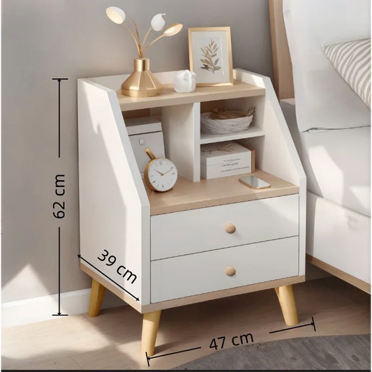 Two-Tone Nightstand Wooden Legs Compartment Storage Drawers White Wood Design