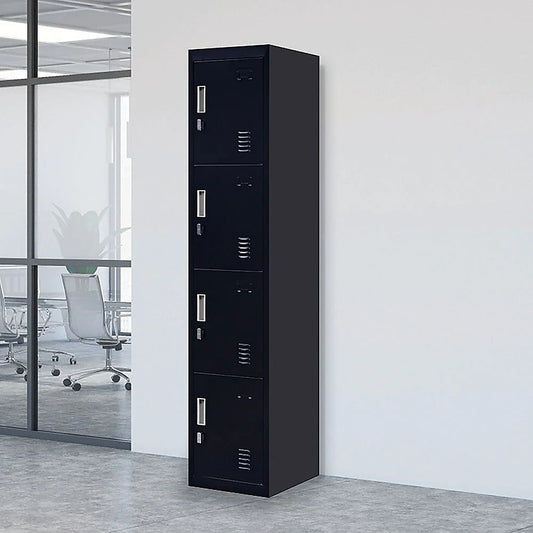 Vertical Locker Office Gym Shed 4-Door Standard Lock - Black