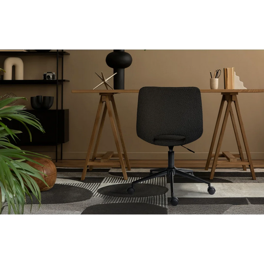 2 Set Office Desk Chair - Loop Yarn Fabric Home Swivel Chair Cut-Out Seat HALO BLACK