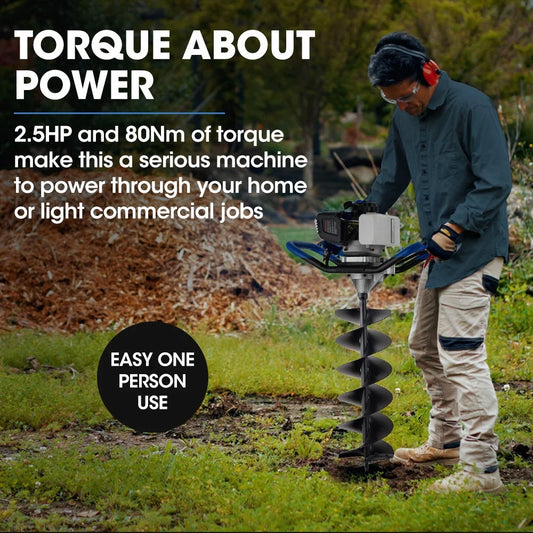 POWERBLADE PD750 52cc 2-Stroke Petrol Post Hole Digger, 200mm Auger w/ 600mm Extension Shaft