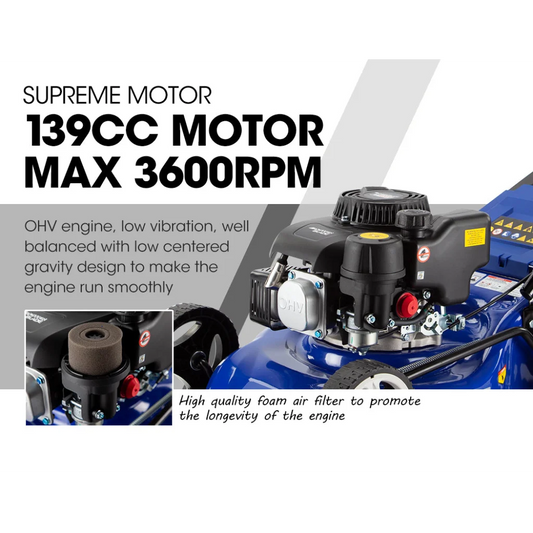 POWERBLADE Lawn Mower 139CC 17" Petrol Powered Push Lawnmower 4 Stroke Engine