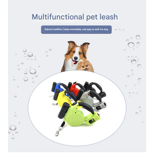Blue 3-in-1 Retractable Dog Leash with LED Flashlight & Poop Bag Dispenser | Heavy Duty Tangle-Free Leash for Safe Night Walks