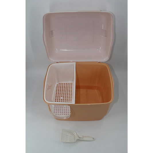 Cat Toilet Litter Box Medium Hooded Tray House with Scoop - Pink