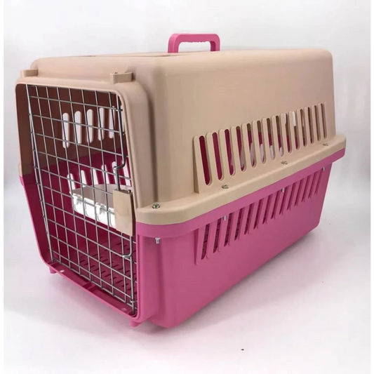 Pet Carrier Portable Plastic Dog Cat Travel Cage with Tray - Pink