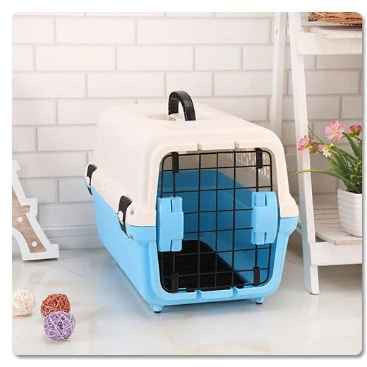 Pet Carrier Portable Plastic Dog Cat Travel Cage with Tray - Blue