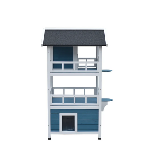 Cat Shelter Double Story Condo with Escape Door Rainproof Kitty House