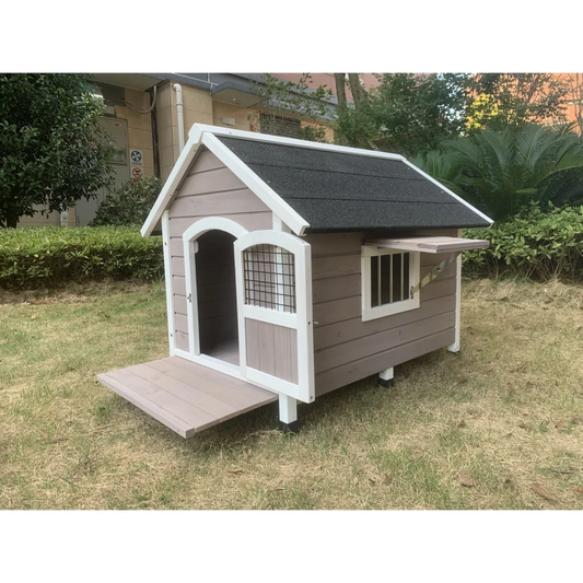 Timber Pet Dog Kennel House Puppy Wooden Cabin with Door - Grey