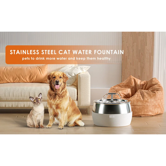 Automatic Pet Water Fountain 3L Dog Cat Stainless Steel Feeder Bowl Dispenser - Black