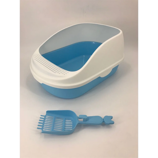 Deep Cat Toilet Litter Box Tray High Wall with Scoop - Large Blue