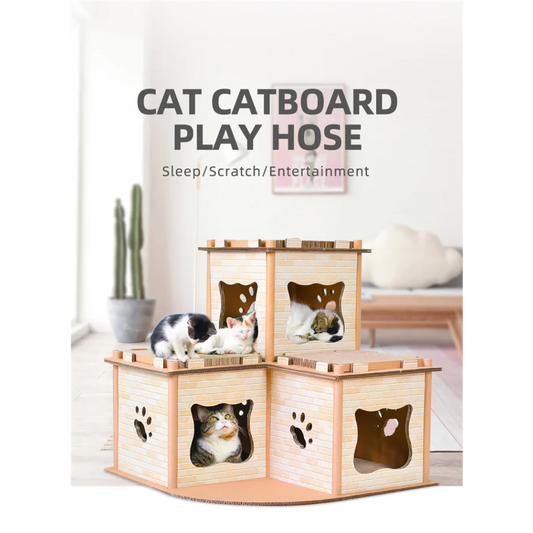 Cat Cardboard House Tower Condo Scratcher Pet Post Pad Mat Furniture