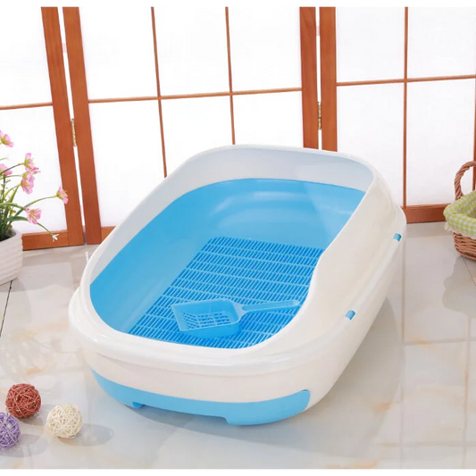 Cat Toilet Litter Box Medium Portable Tray with Scoop and Grid Tray - Blue