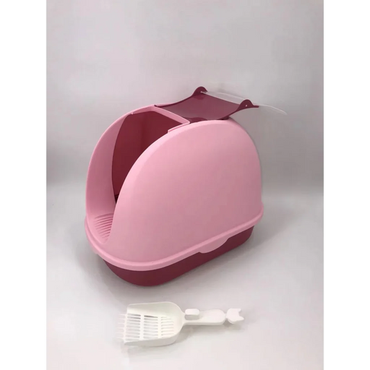 Cat Toilet Litter Box Portable Hooded Tray House with Handle & Scoop - Pink