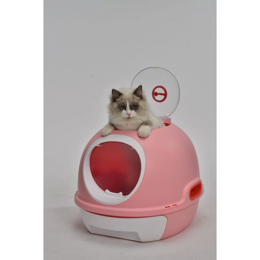 Cat Toilet Litter Box Tray House with Sky Window Drawer Photocatalyst Purifier - Pink