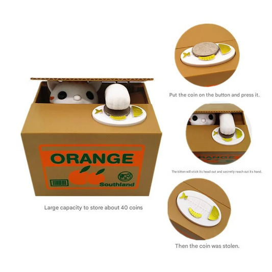 Adorable Cat Stealing Coin Piggy Bank - Automatic Money Saving Box for Kids & Adults(Orange and white cat)