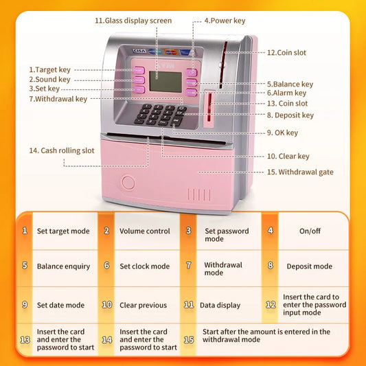 Kids Electronic ATM Savings Bank - Digital Piggy Bank with Password, Auto Roll-in Banknotes & Coin Slot for Financial Learning Fun(pink)