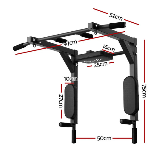 Everfit Pull Up Bar Dip Station Multi Gym 150kg Home Power Station Black Red