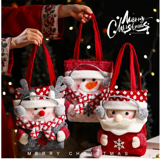 2-Pack Luxury Red Velvet Snowman Christmas Gift Bag(13x18CM) - Festive Drawstring Storage Bag for Candy, Gifts & Apple Packaging
