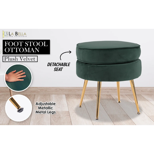 Ottoman Foot Stool Velvet Fabric Metal Leg Round - Green