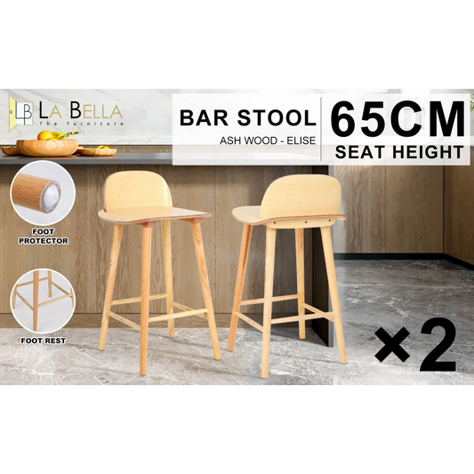 2X Wooden Bar Stool Dining Chair Ash Wood ELISE 65cm