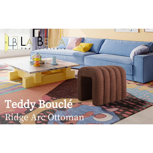 2X Ridge Arch Ottoman Stool Teddy Fleece Fabric Foot Rest 45cm BROWN