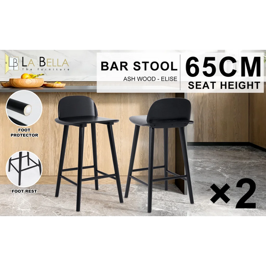 2X Wooden Bar Stool Dining Chair Ash Wood ELISE 65cm BLACK