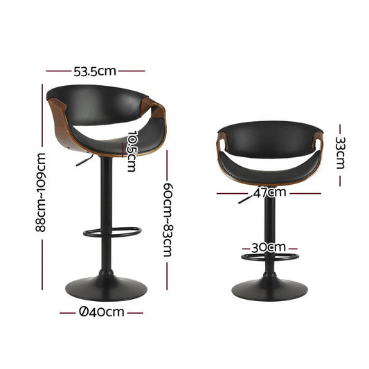 Bar Stools Swivel Chair Kitchen Gas Lift Wooden Leather - Black
