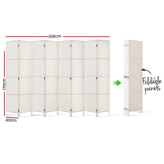 Room Divider Screen 8 Panels Privacy Rattan Timber Fold Woven Stand White