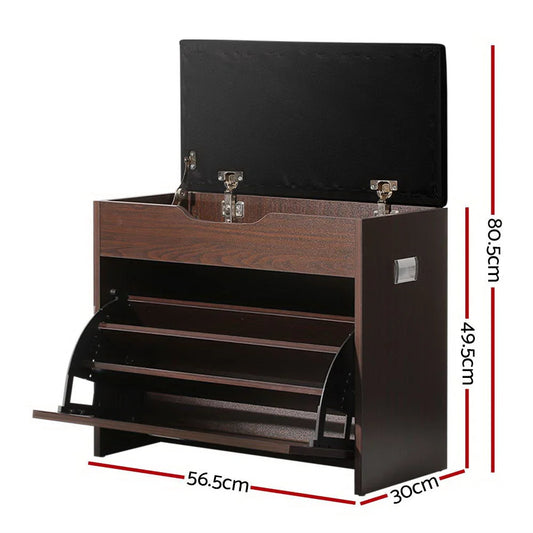 Shoe Cabinet Organizer Wooden Storage Bench Stool - 12 Pairs