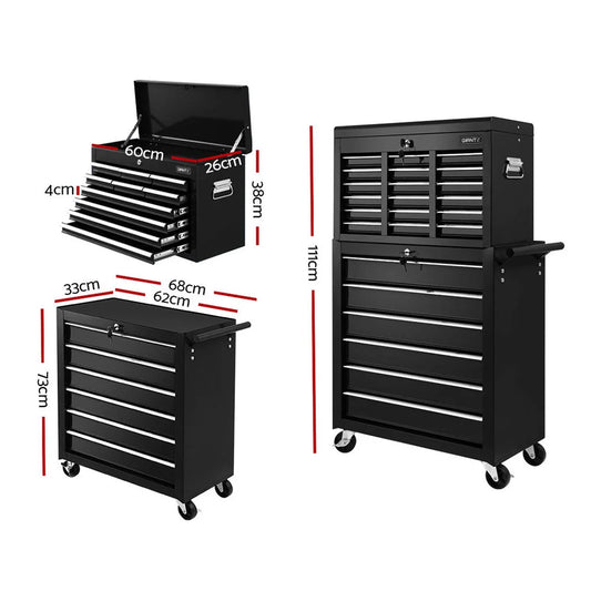 Tool Box Chest Trolley 16 Drawers Cabinet Cart Garage Toolbox Black