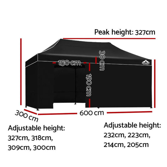 Pop-Up Gazebo Marquee 3x6m, Folding Wedding Tent Shade, Black