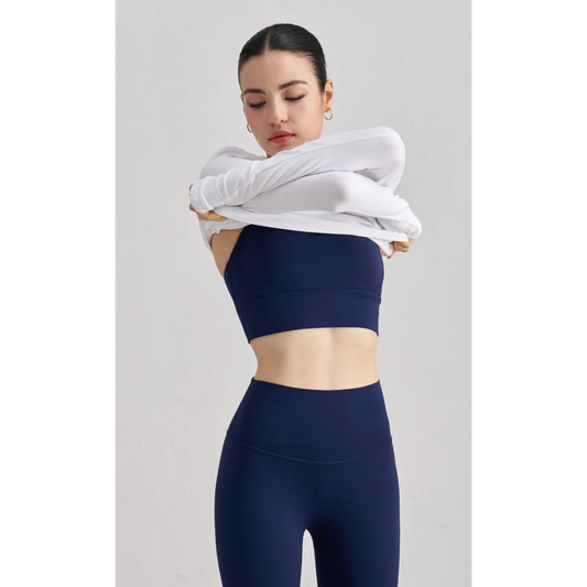 Size L Deep Sea Blue Cross-Back Yoga Sports Bra for Women - High Support & Shockproof Fitness Bra