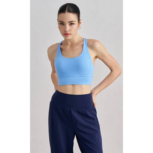 Size XL Light Blue Cross-Back Yoga Sports Bra for Women - High Support & Shockproof Fitness Bra