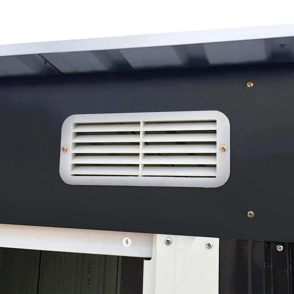 Inside, the Metal Garden Shed leaves plenty of room for tools and equipment while the four air vents ensure adequate ventilation at all times to prevent any stuffiness. The double sliding doors also make entrance easy and obstructive for bringing equipment in and out of the Shed. Not least, the sloped roof ensures all rain and water is easily drained off with no chance of pooling.