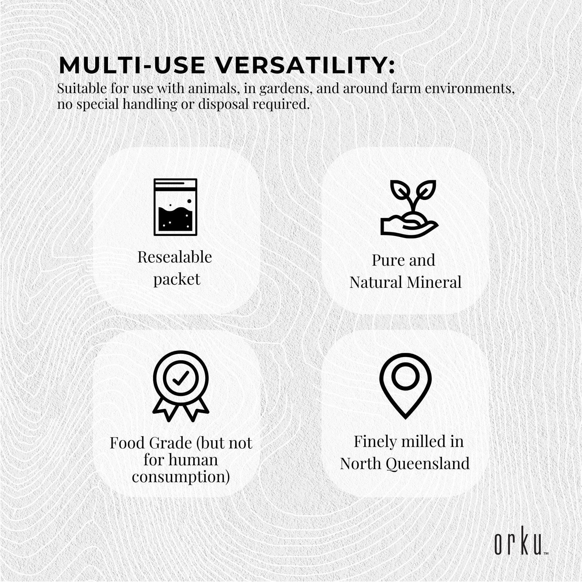 Orku Fossil Shell Flour 1Kg - Livestock Garden Pet Diatomaceous Earth