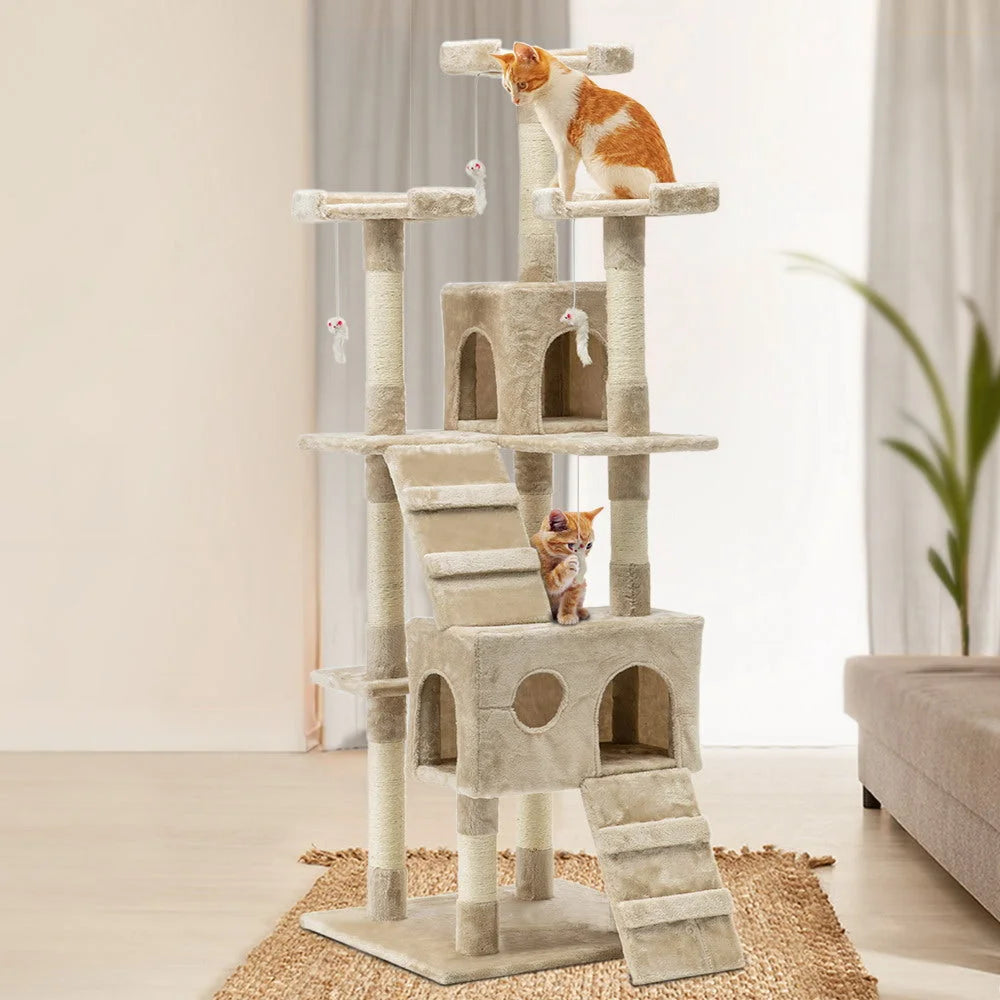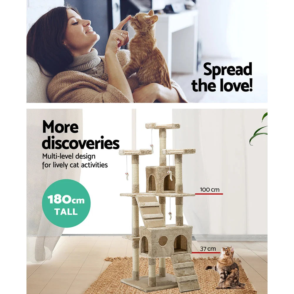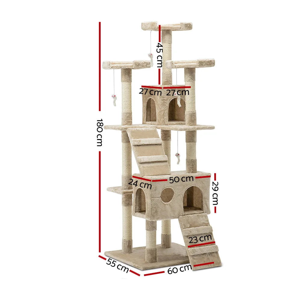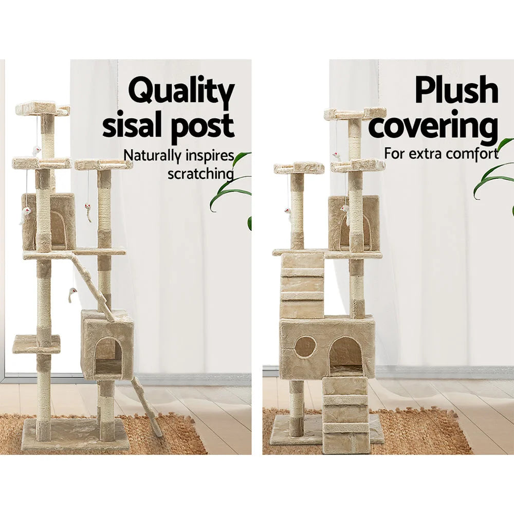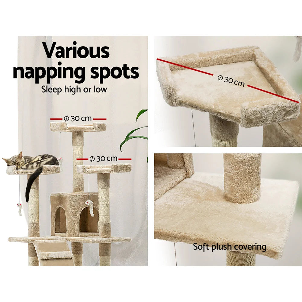 Cat Tree 180cm, Wood Scratching Post Tower Condo, Beige