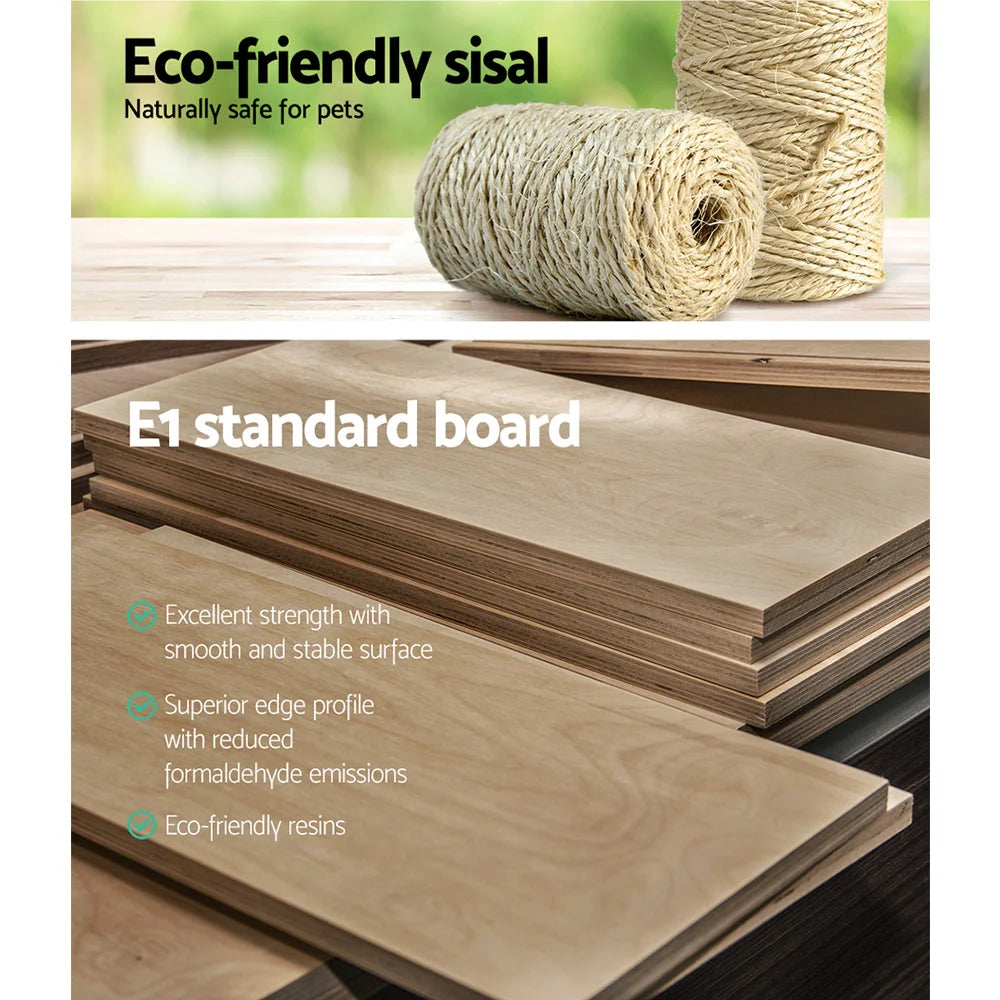 Made from E1 standard board and natural sisal, the entire unit is both pet and eco-friendly with durable and longlasting qualities. Best of all, the Scratch Tree is upholstered with a plush velvety surface for extra comfort and style.