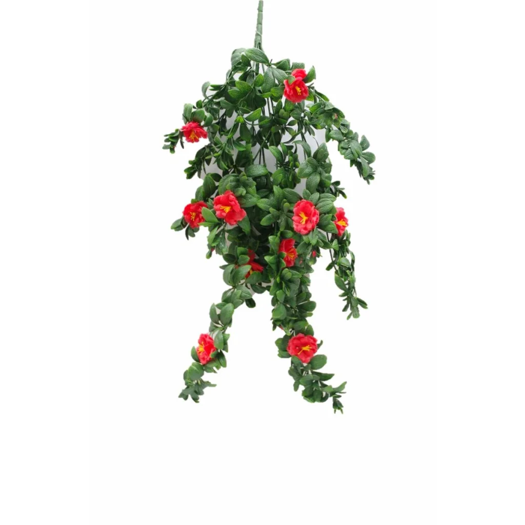 A stunningly vivid artificial hanging red rose plant that is UV resistant and long-lasting. Amazingly bright flowers that look realistic and can be used indoors or outdoors.