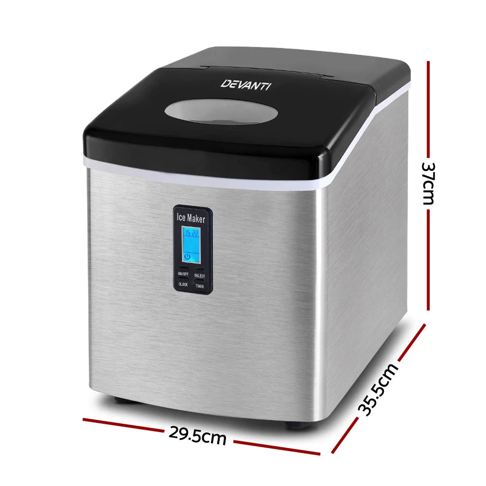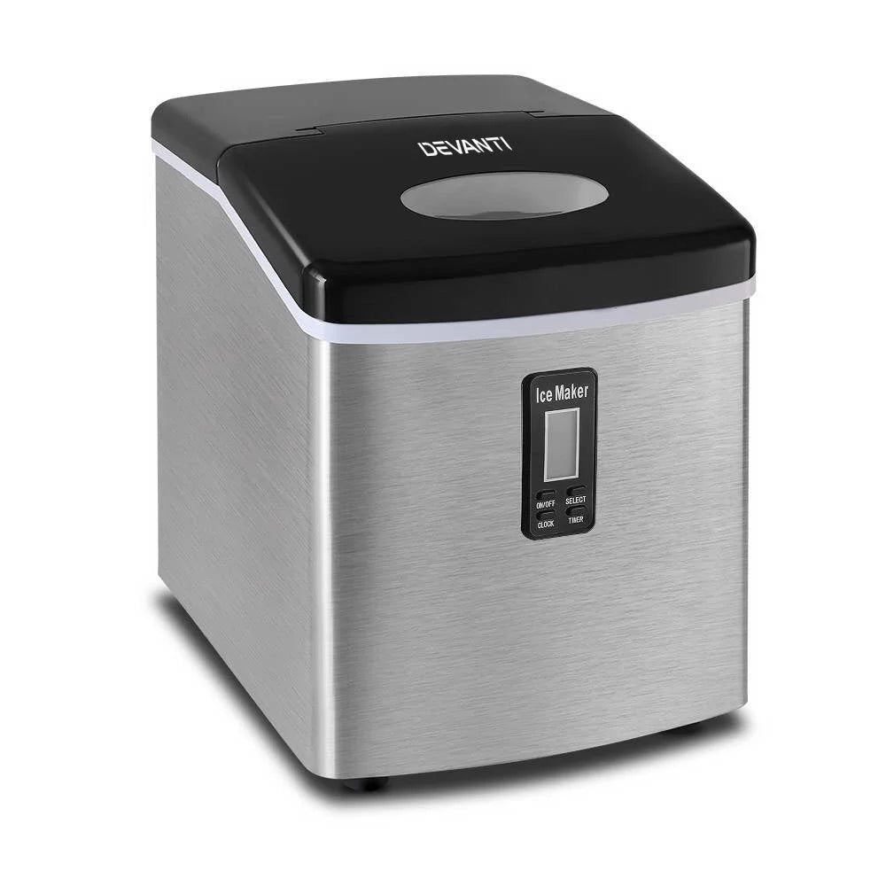 Looking for ice in a hurry? Meet our Devanti Ice Maker! Quickly produce 9 ice cubes in 6-13 minutes, with the flexibility to choose from 3 sizes. It's loaded with smart features like water shortage and ice full alarms, plus energy-saving technology through Freon-free refrigerant and enhanced heat dissipation. Its sleek, compact design fits anywhere, and with its easy-to-use controls, you'll be enjoying cold beverages in no time. Ice at home has never been cooler!