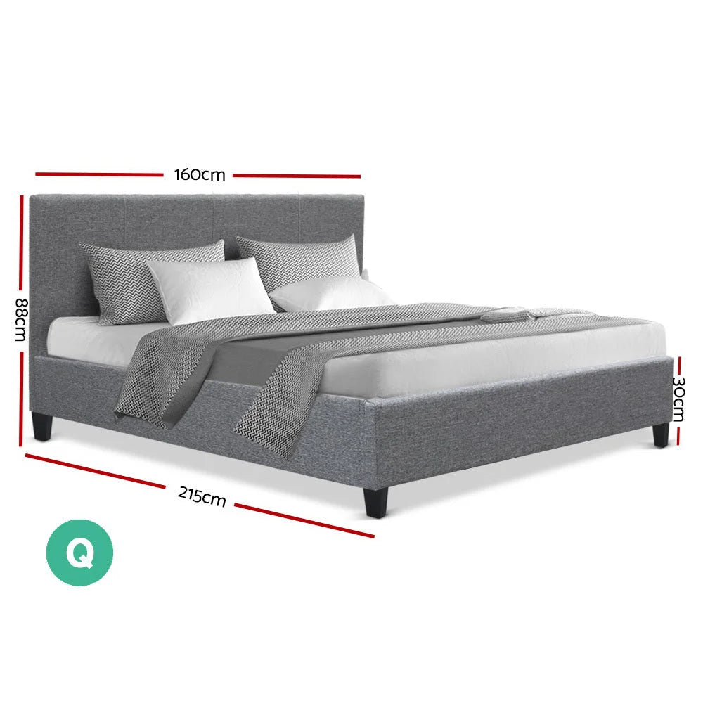 Give your bed a touch of modernistic appeal with our Artiss Neo Bed Frame. Wrapped in premium faux linen fabric, the bed frame is at once smooth to the touch and luxurious all round. The bedhead provides ample space for a relaxing back rest when you need to sit up on the bed to read, surf the net or catch a movie on your device. You will surely appreciate the high-density foam that fills the bedhead and every other inch of the bed frame for a well-padded look and feel. Within the frame, a highly flexible wooden arched slat base allows the bed to flex properly so that a person who lies on the bed can move around without unduly disturbing the other. Not least, the sturdy wooden frame is also held together by heavy-duty metal connectors so that you never have to worry about the stability or durability of the bed frame. If elegant sleep is what you after, look no further than the Artiss Neo Bed Frame to make your dreams come true.