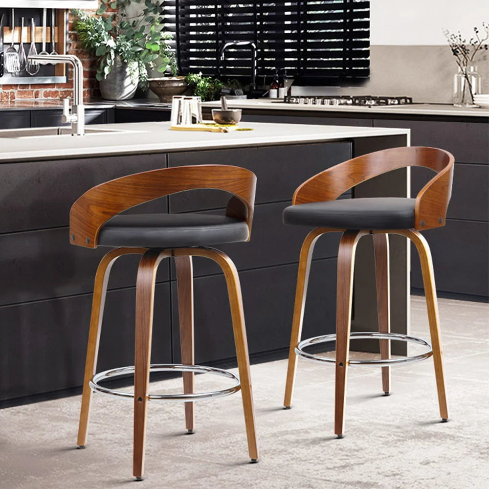 Walnut Wood Bar Stools (Set of 2), Black/Brown